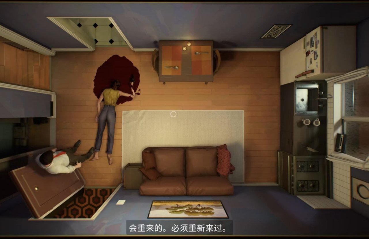 时限已过。轮回又开始了。为了避免死亡,有必要让光头先听听夫妻的辩解。然而,以前的事实证明,一旦光头进入房屋,只有射击才能使他冷静地回答,而一旦射击,光头肯定会因失血过多而死亡。